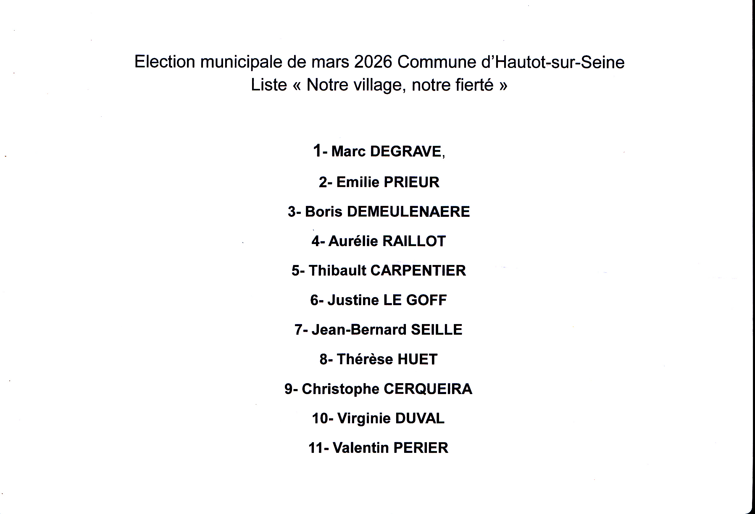 La liste unique des candidats aux élections municipales du dimanche 15 mars 2026 a été élue.