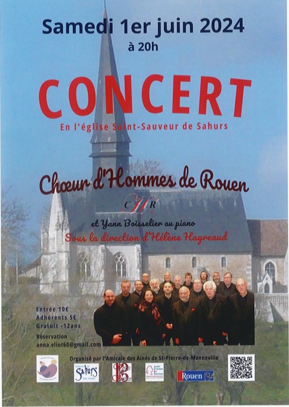 Le Choeur d'Hommes de Rouen chantera samedi 1er juin 2024 à 20h dans l'église de Sahurs.